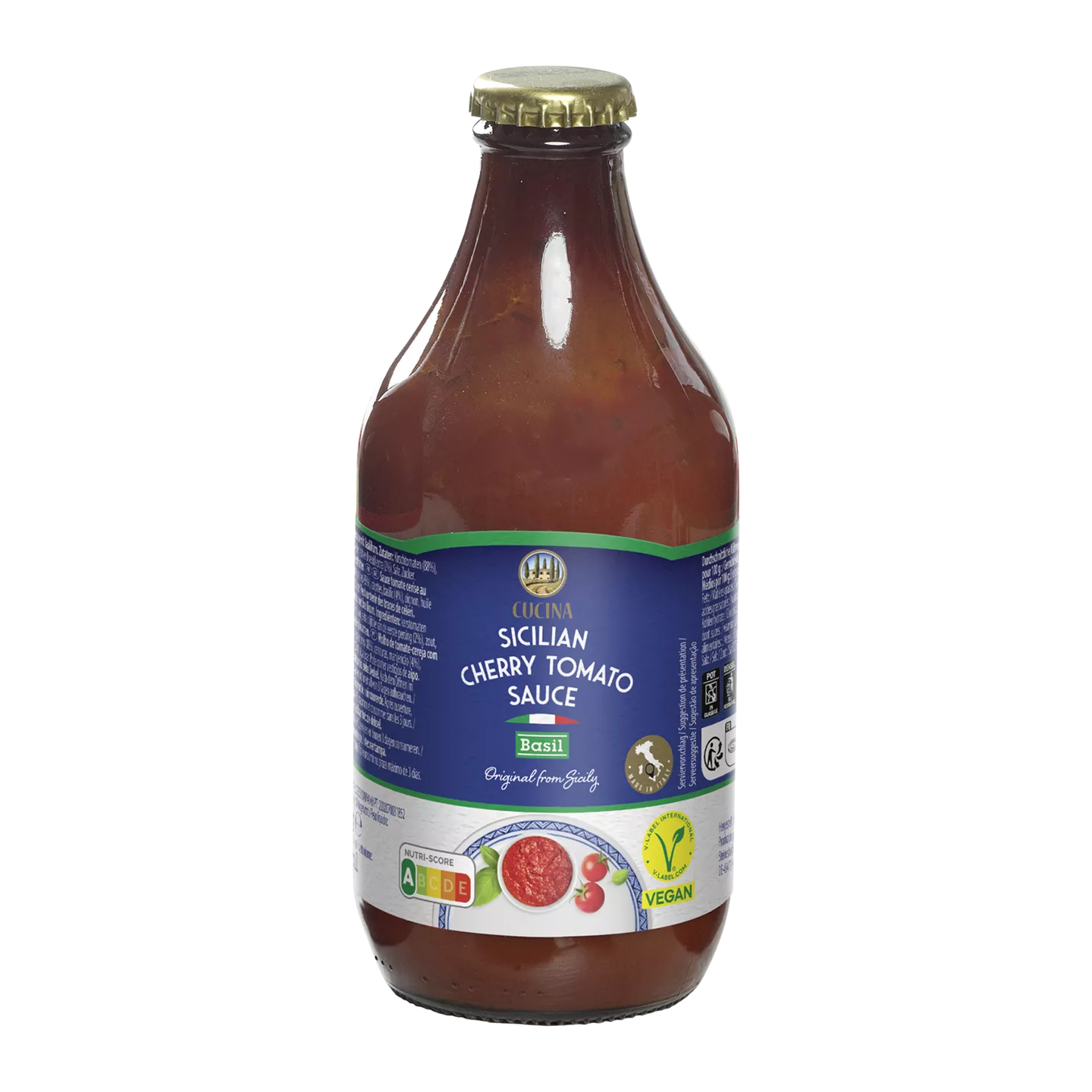 Aldi Cucina ciciliaanse cherrytomatensaus basilicum Categorieën: Italiaans, Pastasaus, Sauzen & smaakmakers Keurmerk: V-Label Vegan Info V-Label Vegan?Het product heeft het V-Label keurmerk met toevoeging Vegan. Aanvullende informatie Merk Aldi huismerk Winkel Aldi Wijziging doorgeven