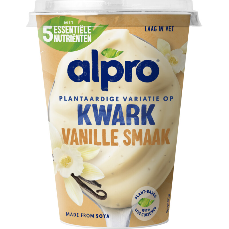 Alpro plantaardige variatie op kwark vanille Categorieën: Kwark, Zuivelopvolgers Keurmerk: V-Label Vegan Info V-Label Vegan Aanvullende informatie Merk Alpro Winkel Albert Heijn, Dekamarkt, Dirk, Hoogvliet, Jumbo, Picnic, Plus, Poiesz Allergie Glutenvrij Wijziging doorgeven