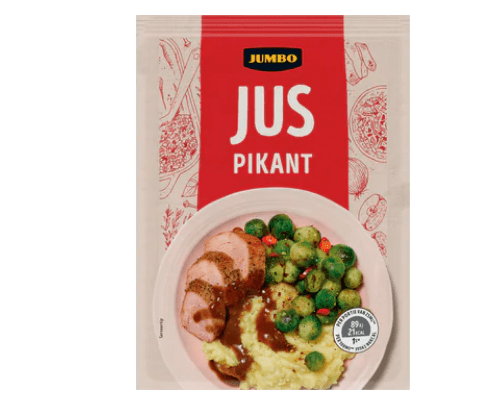 Zelf Nagevraagd Facebookmessengerreactie van Jumbo klantenservice op 12 februari 2020: "Alle drie de varianten jus zijn geschikt voor veganisten."