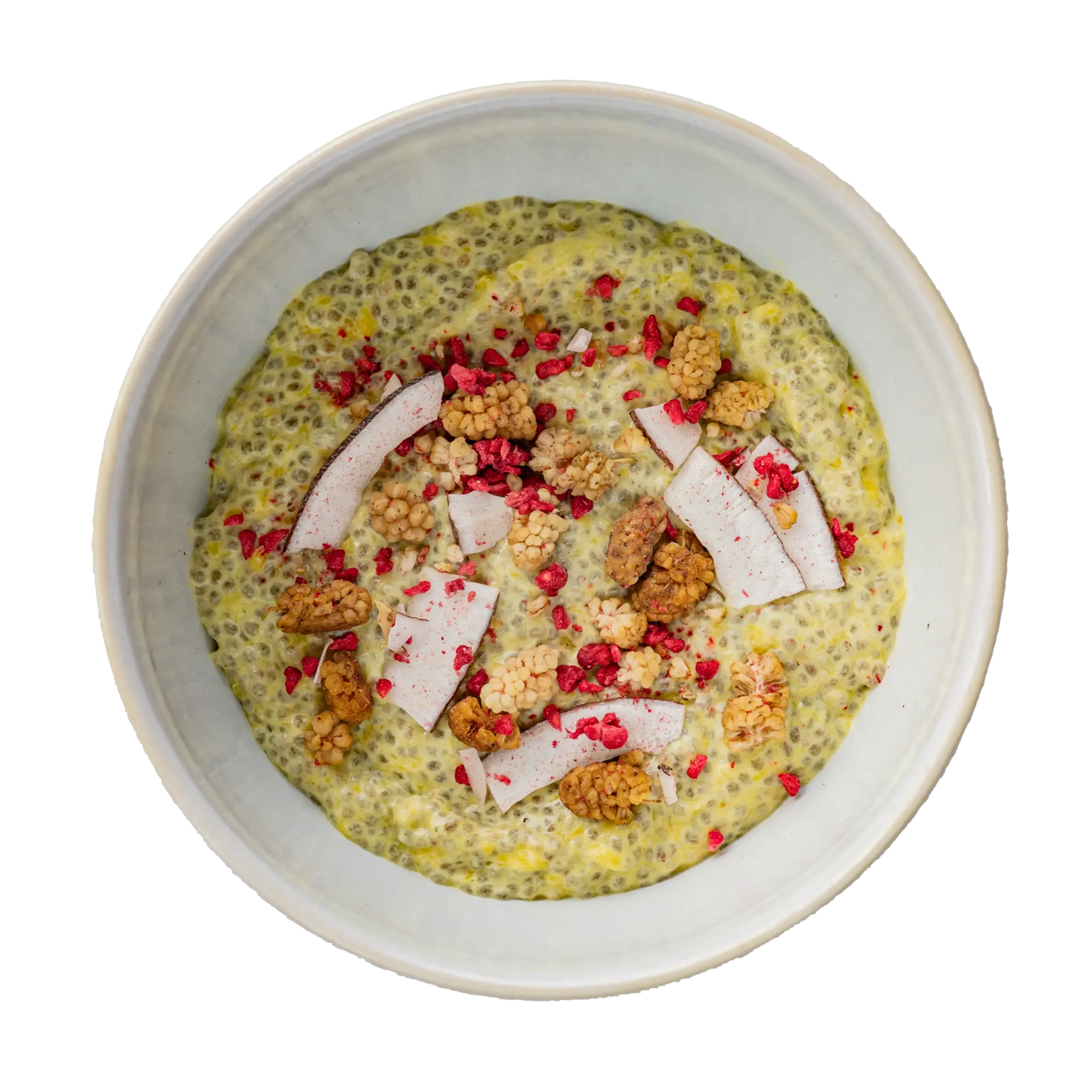 Vood chiapudding met mango en frambozen